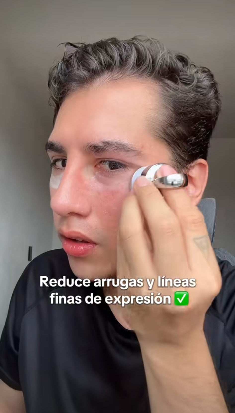 4️⃣ Deslízalo suavemente desde el lagrimal hacia la sien durante 3–5 minutos.